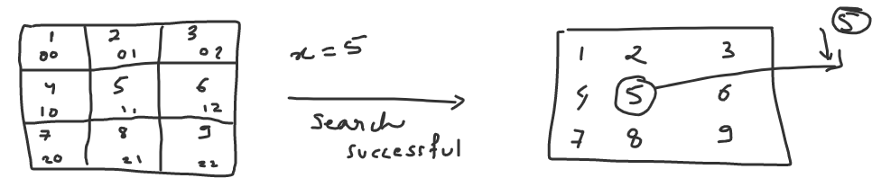 In any of the iteration, return true for the successful search and return false if check is performed with all row elements.