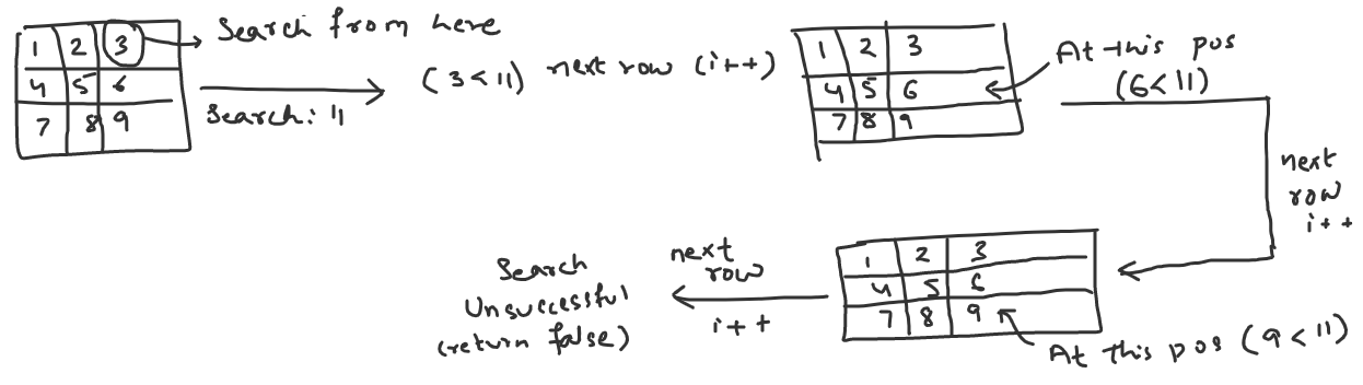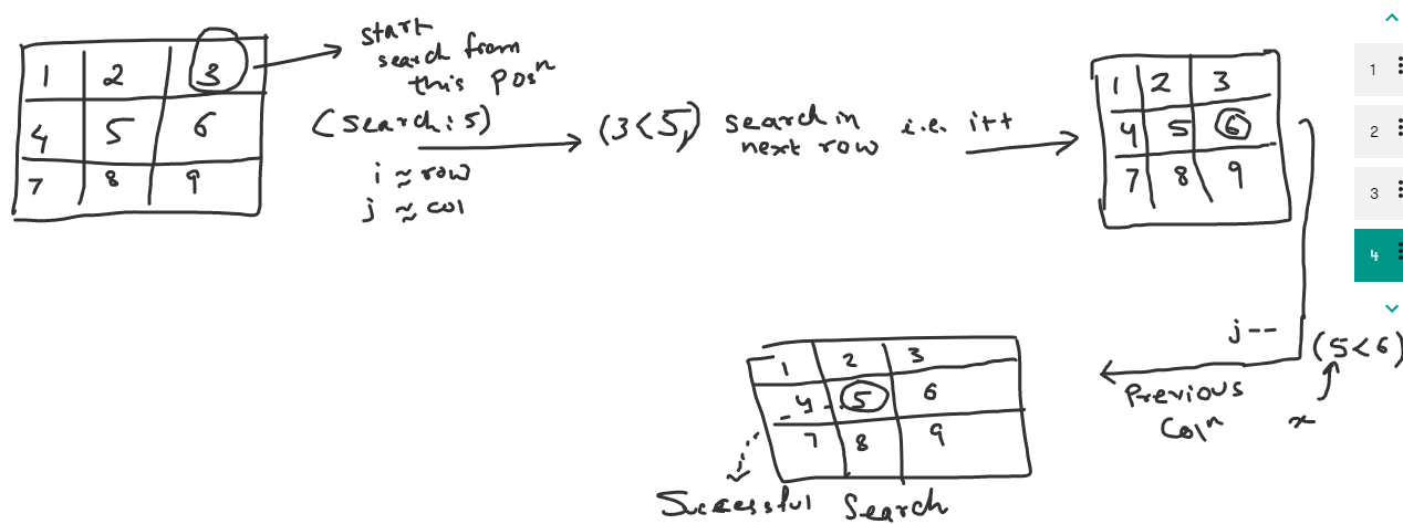 Solution Approach 2 ( Making use of any one Condition : Rows are Sorted or Columns are sorted)